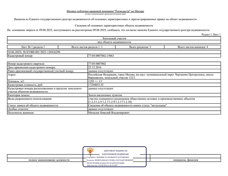 Адрес: Российская Федерация, город Москва, вн.тер.г. муниципальный округ Чертаново Центральное, шоссе Варшавское, земельный участок 132/1.