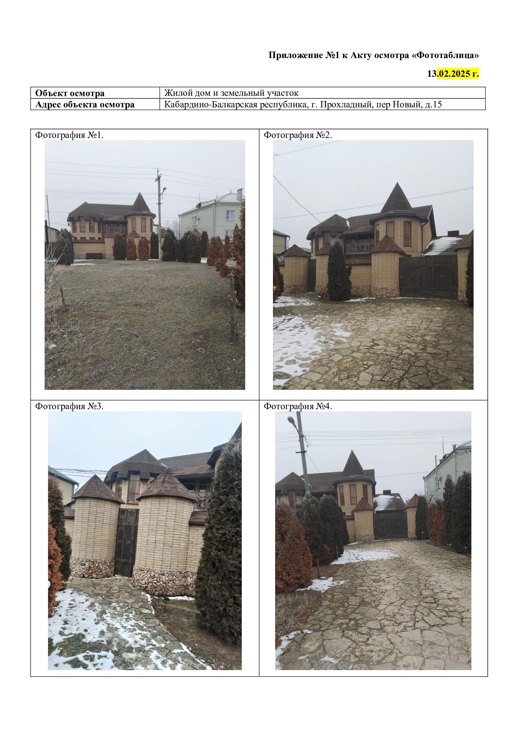 - Земельный участок, общая площадь: 714 кв.м. Адрес: Кабардино-Балкарская Республика, р-н Прохладненский, г. Прохладный, пер. Новый, д. 15. Кадастровый номер: 07:10:0206026:34.