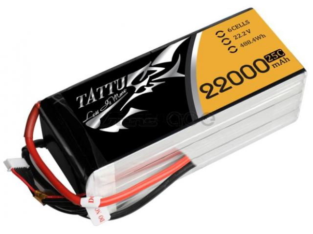 Литий-полимерная АКБ 6s1P, 22,2V, 22000mAh, обеспечивает наиболее длительное время полета.