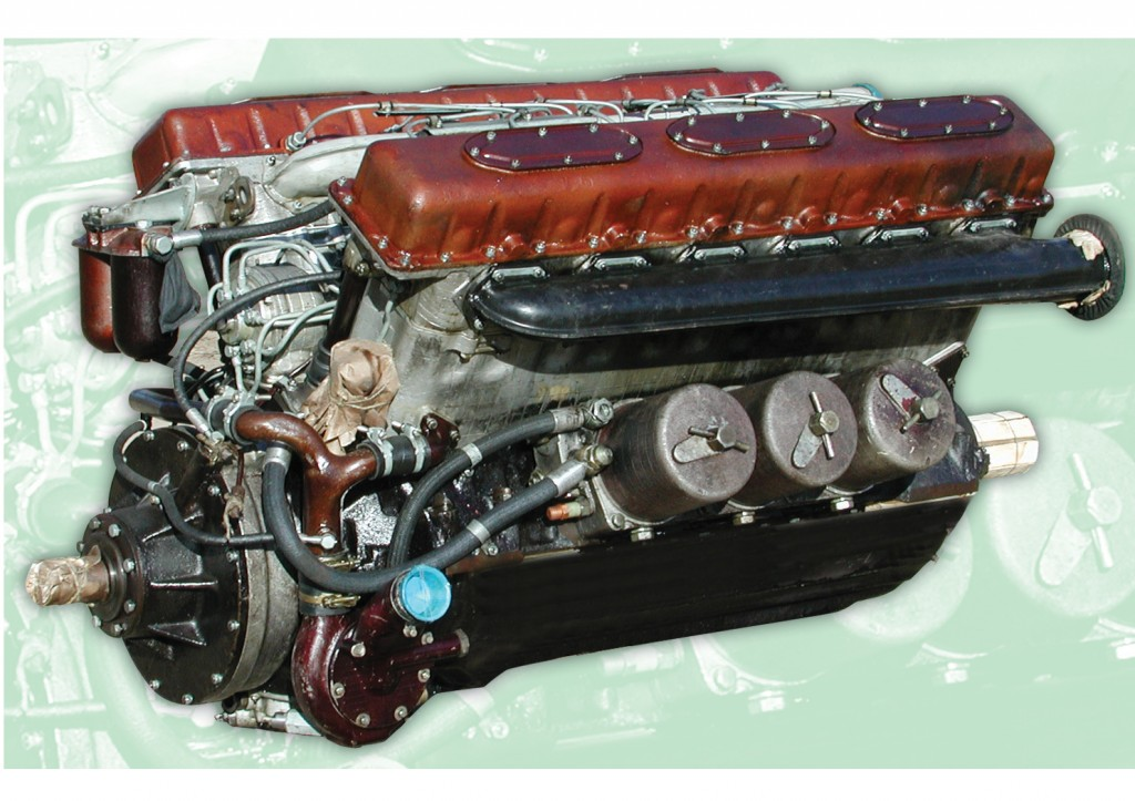 Двенадцатицилиндровый, четырех-тактный, с жидкостным охлаждением