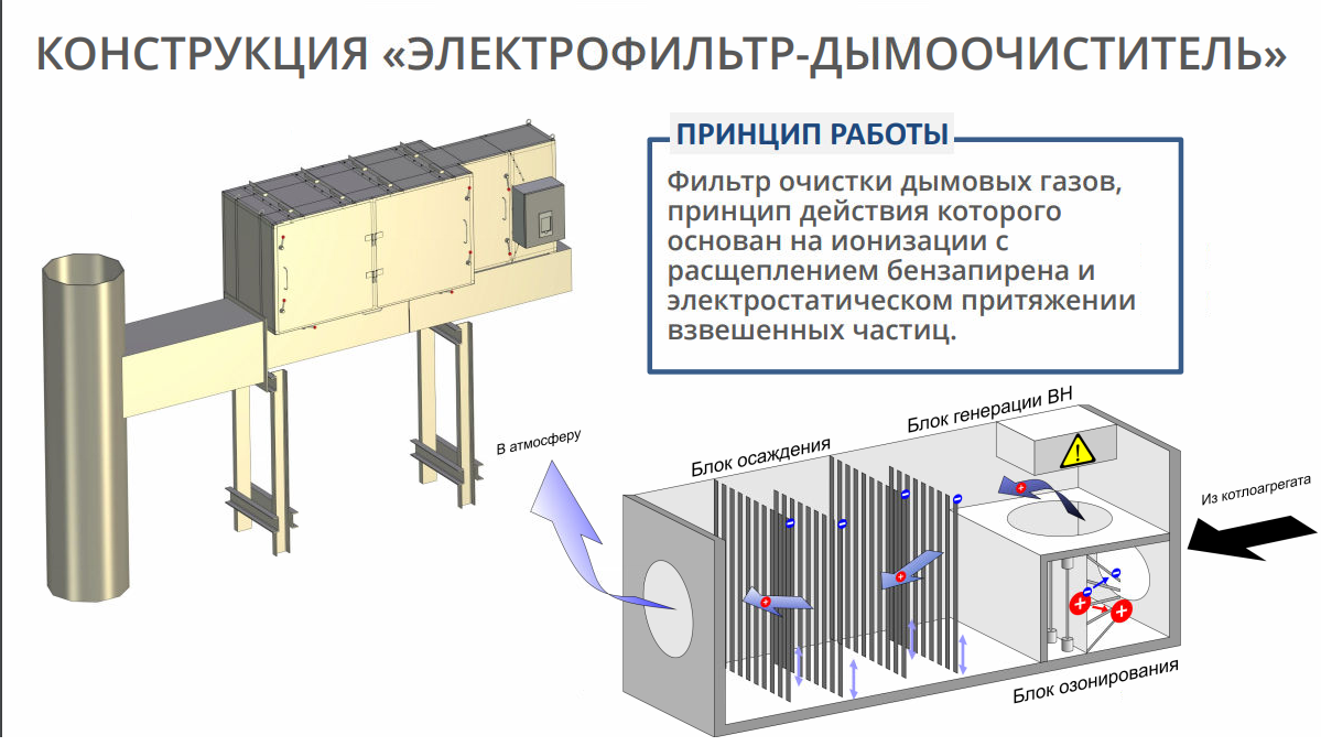 ✓ В электрическом поле высокой частоты задерживает сажу, несгоревшие
