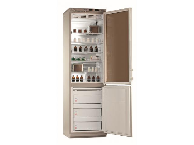 Предназначен для работы в лабораториях различных направлений и диагностических центрах (ПЦР, биохимические, иммунологические и гематологические исследования), на станциях переливания крови и в серологических лабораториях, при оснащении аптек, аптечных производственных отделений и фармацевтических предприятий, прививочных кабинетов. Холодильник обеспечивает потребность в хранении лекарственных препаратов, сред, вакцин, образцов, тест-наборов и других фармацевтических средств при температуре от +2°С до +15°С в холодильной камере и при температурах от минус 10°С до минус 25°С в морозильной камере. Основные характеристики: 2 микропроцессорных регулятора температур со сверхчувствительными датчиками температуры, система принудительной циркуляции воздуха в холодильной камере, в холодильном отделении дверь стеклянная с замком, в морозильном отделении дверь металлическая, автоматическое поддержание температуры в камерах, сигнализация при отклонении температуры от заданной, отображение температуры на табло панели управления, отключение вентилятора при открывании двери.