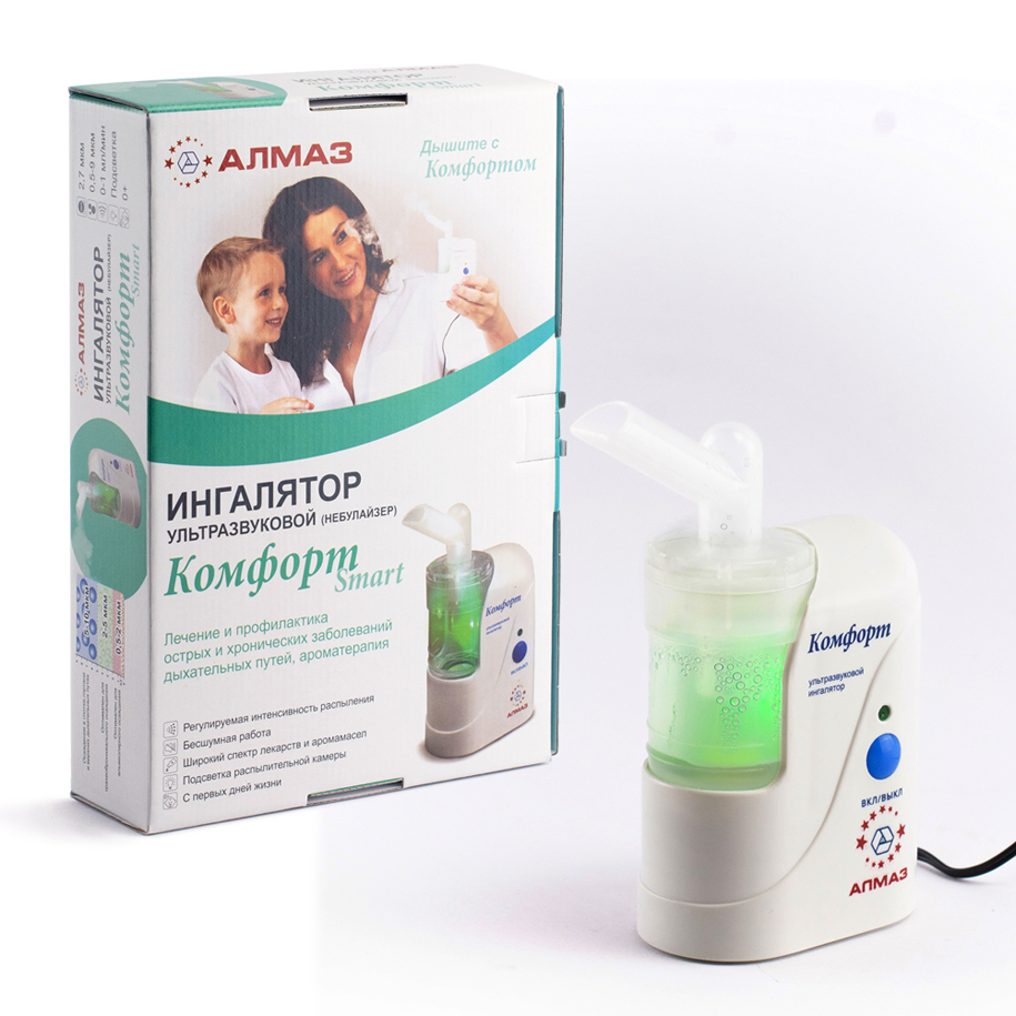 Ингалятор ультразвуковой серии «Комфорт» («Комфорт-02-Smart» и «Комфорт-02-Fly») подходит взрослым и детям, в том числе новорожденным, для лечения верхних и нижних отделов дыхательных путей, бронхов и лёгких.