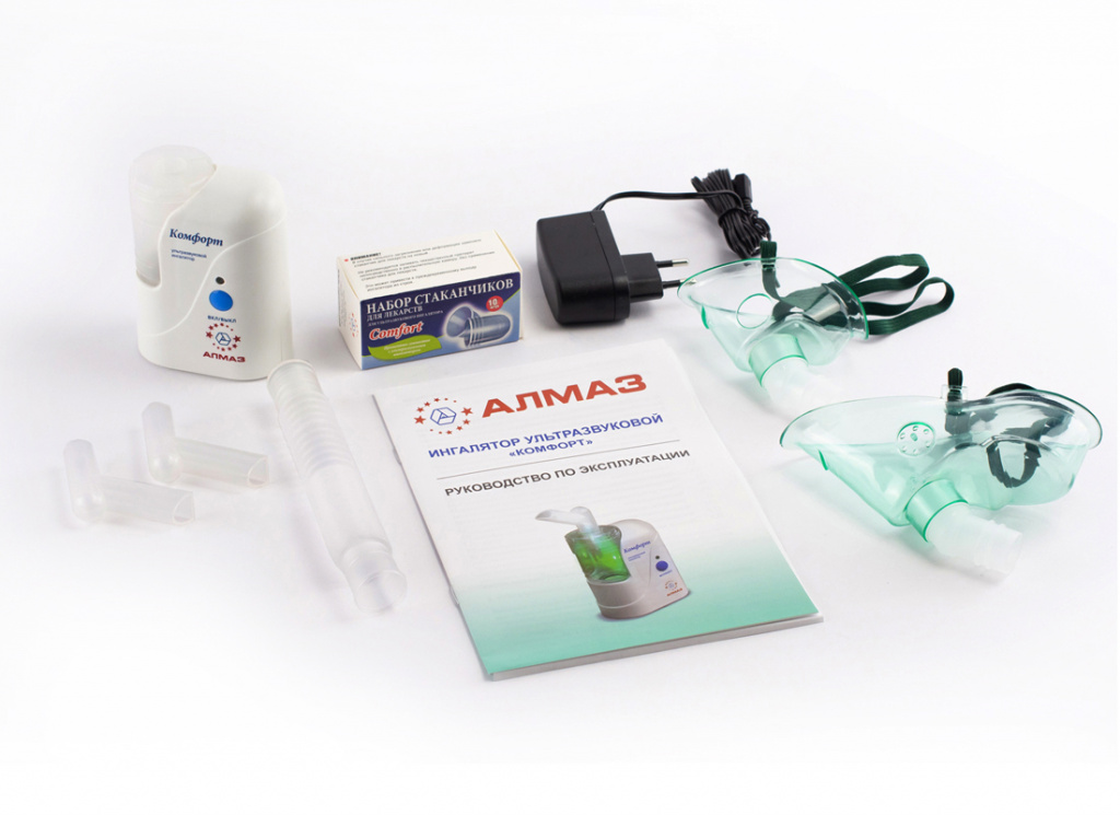 Ингалятор-небулайзер ультразвуковой «Комфорт» комплектуется масками для детей и взрослых.