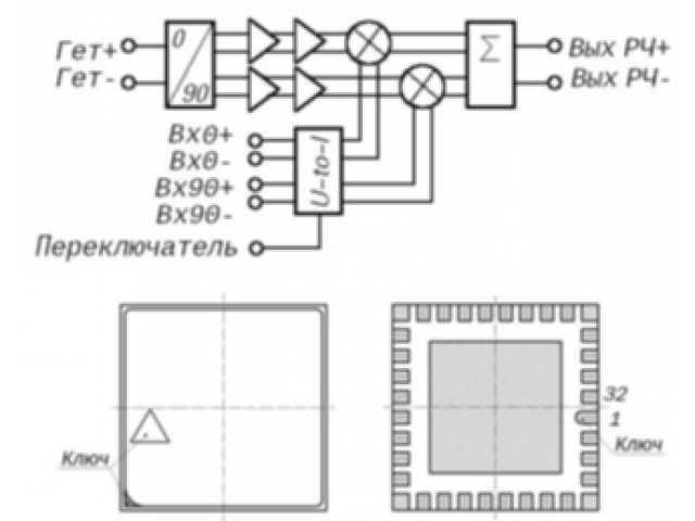 Кремний-германиевая БиКМОП СБИС широкополосного квадратурного модулятора предназначена для применения в радиотрактах аппаратуры военного и специального назначения и обеспечивает:
