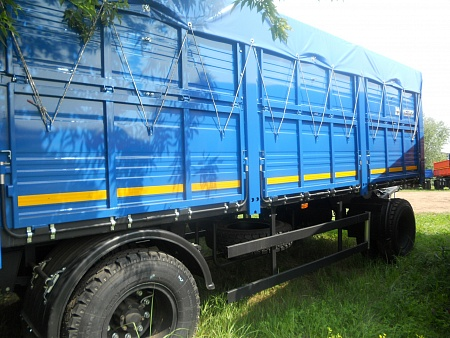 Двухосный бортовой прицеп НЕФАЗ-8332-01 предназначен для перевозки зерна и сыпучих грузов. Платформа – металлическая, сварная, прямоугольной формы, объемом 28 куб.м. Модель оснащается осями НЕФАЗ или аналогами, рессорной подвеской, односкатной или двускатной ошиновкой.
