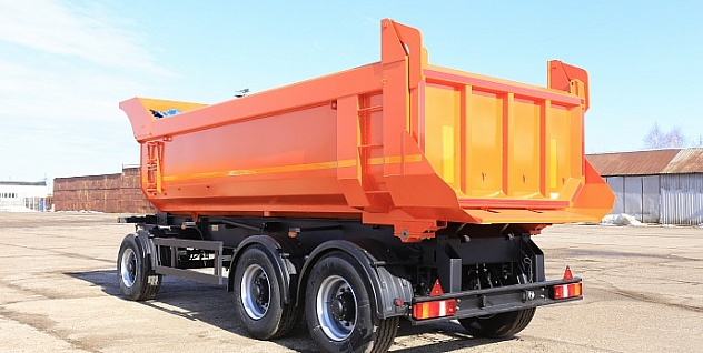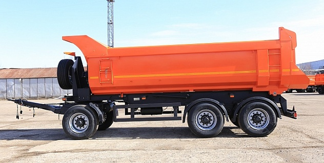 Трехосный самосвальный прицеп НЕФАЗ-8560-04 предназначен для перевозки различных сыпучих, строительных промышленных грузов по общей сети дорог. Объем платформы составляет 16 куб.м., разгрузка задняя. Подвеска рессорная, оси НЕФАЗ, односкатная ошиновка (385/65R22,5).