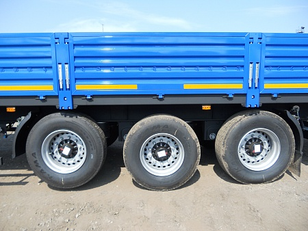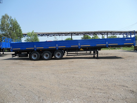Трехосный бортовой полуприцеп НЕФАЗ-93341-07 предназначен для перевозки различных грузов по общей сети дорог. Платформа металлическая, сварная, прямоугольной формы, с откидными боковыми и задним бортами, с фанерным настилом пола, объем 24 куб.м. Оси на пневмоподвеске.