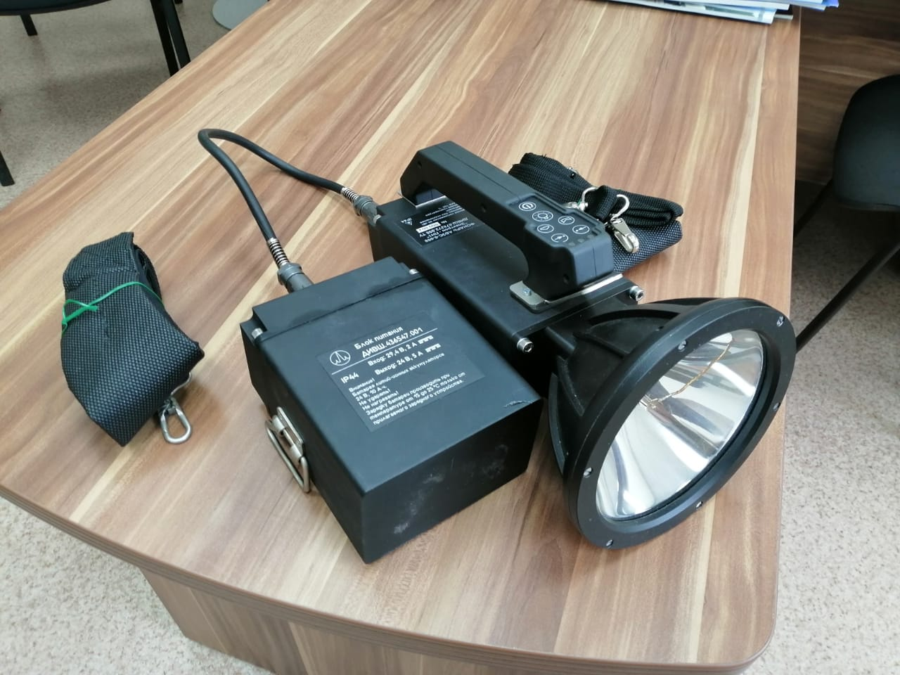 Ручной ксеноновый прожектор, обеспечивающий осевую силу света в 4 миллиона кандел, является самым мощным из всех представленних на рынке ручных прожекторов/фонарей российского производства. Защищено патентом RU195360U1. Ручной прожектор оснащен переключателем на три настройки интенсивности света, а также оборудован мощным дезориентирующим/сигнальным стробоскопом. Луч прожектора может быть настроен как на освещение удаленных объектов шириной луча 1,5°, так и на освещение окружающих предметов шириной луча 40°, возможно освещение целей, расположенных на расстоянии до 3,5 км (в форсированном режиме) Прожектор комплектуется ксеноновой короткодуговой лампой мощностью 75 Вт и высокоточным никелевым гальванопластическим рефлектором с алюминиевым напылением. Питание лампы осуществляется от литий-полимерной аккумуляторной батареи. Время непрерывной работы от аккумуляторной батареи 24В, 10А/ч не менее 3ч. 30 мин. Режимы работы лампы прожектора: - экономичный; - номинальный; - фо...