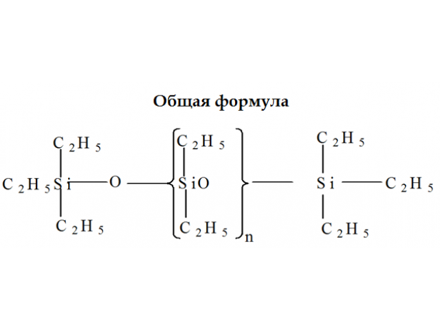 Полиэтилсилоксановые жидкости представляют собой смеси олигомеров в основном линейной структуры общей формулы (см. фото).