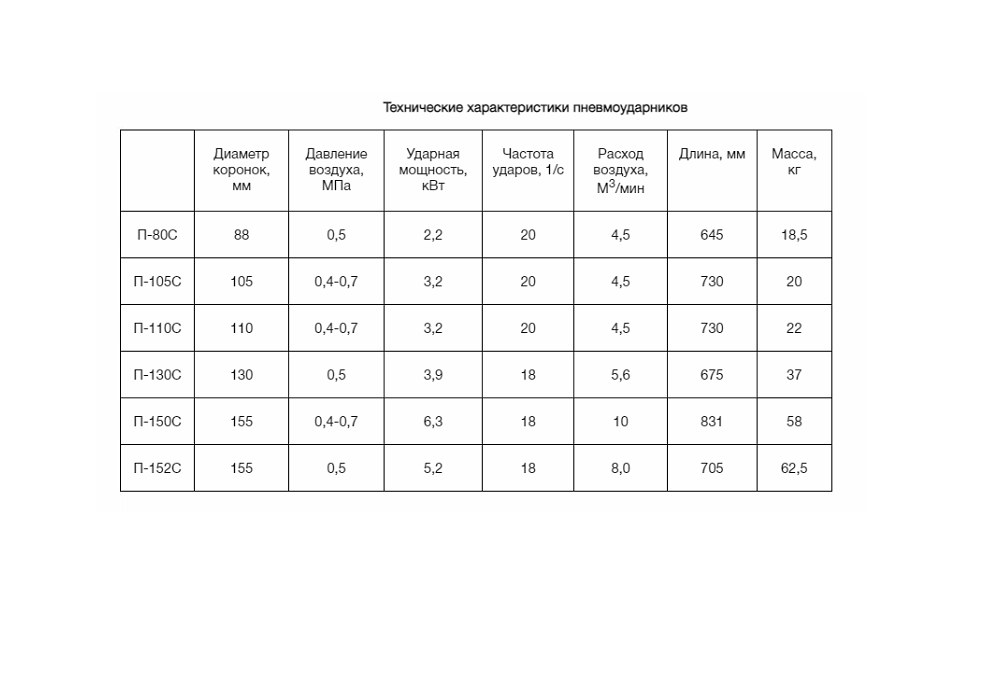 Погружные пневмоударники предназначены для бурения скважин различного направления в породах средней крепости на глубину 30-80м в зависимости от рабочего давления энергоносителя на выходе в пневмоударник.