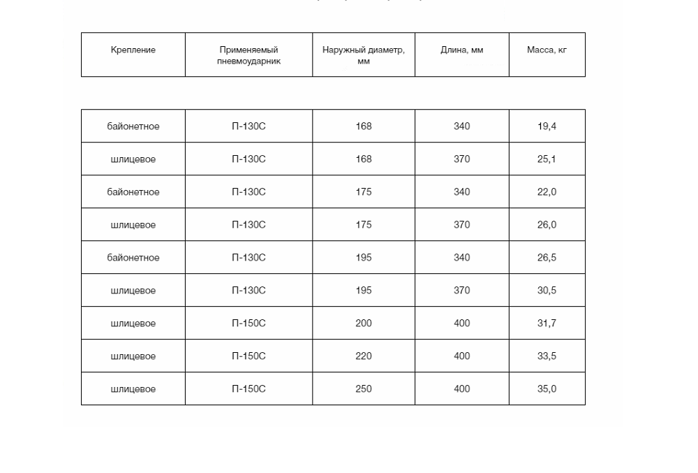 Пневмоударные расширители предназначены для увеличения диаметра скважины в породах средней и высокой крепости по предварительно пробуренной скважине с применением пневмоударников при бурении как вверх так и вниз. Состоят из частей: направляющей по диаметру пробуренной скважины, корпуса расширителя, хвостовика для крепления к пневмоударнику, который может выполняться с байонетным или щлицевым соединением.