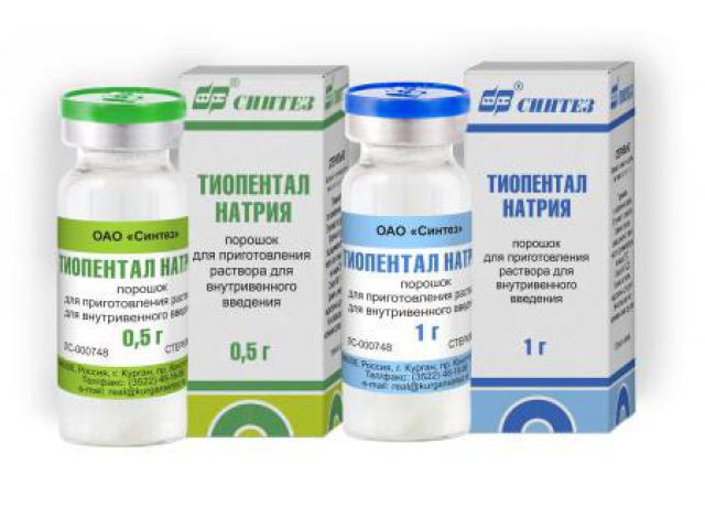 Активное вещество: тиопентал натрия - 0,5 г, 1 г.