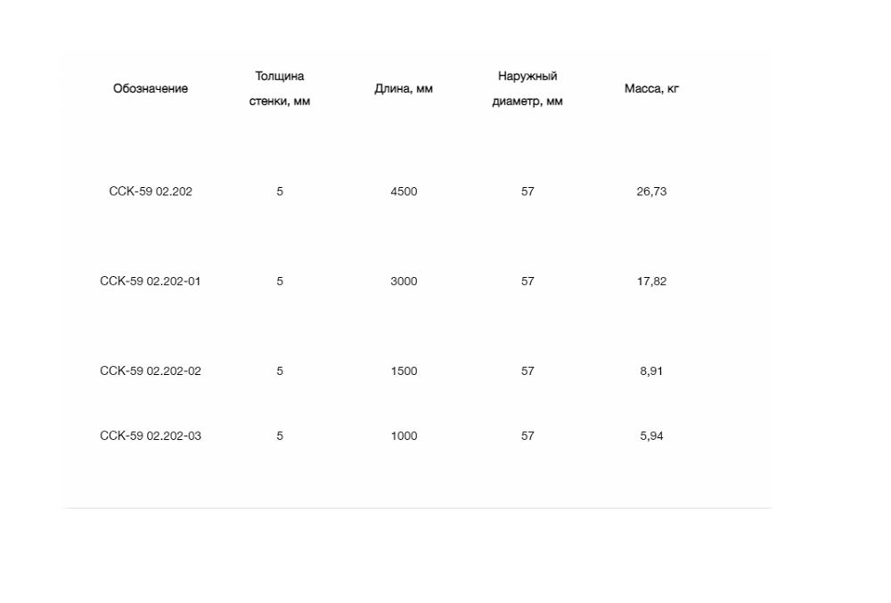Трубы бурильные ССК59 отличаются наружной и внутренней гладкоствольностью, что необходимо для свободного перемещения керноприемника внутри труб и для максимального приближения наружного диаметра колонны труб к диаметру скважины с целью уменьшения их изгиба от осевой нагрузки при бурении. Трубы изготавливаются без высадки концов, имеют наружную и внутреннюю слабоконическую трапецедальную резьбу. Наличие двух упоров резьбы в соединении обеспечивает более равномерное распределение нагрузки по виткам и большую герметичность. Соединение труба в трубу.