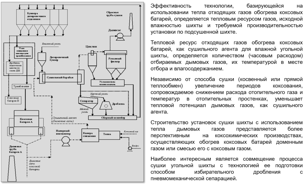 Сушка углей, сепарация и избирательное дробление углей при подготовке шихты для коксования