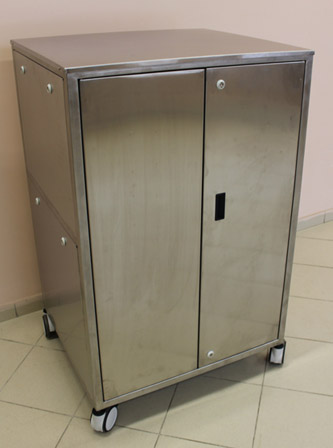 Конструкция изделия выполнена в виде пространственной рамы с четырьмя колесами, со съемными внешними панелями и распашными дверцами.