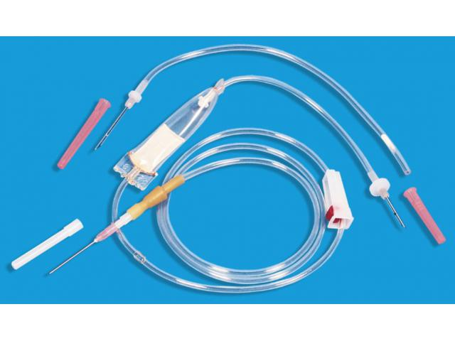 Устройство представляет собой полимерную трубку, оснащенную капельно-фильтрующим узлом, инъекционным узлом, инъекционной иглой, роликовым зажимом, иглой для присоединения к бутылке и воздуховодом.
