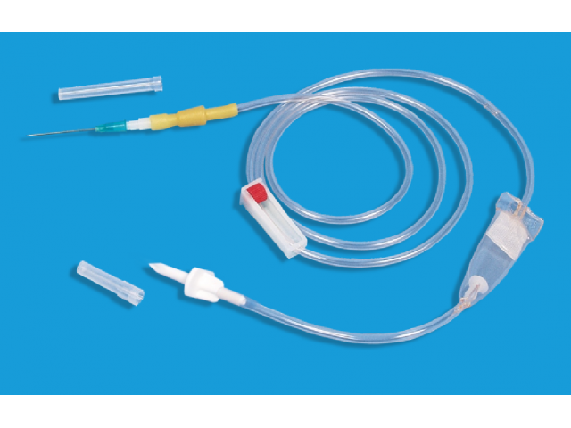 Устройство представляет собой полимерную трубку, оснащенную капельно-фильтрующим узлом, инъекционным узлом, инъекционной иглой, роликовым зажимом, иглой для присоединения к полимерному контейнеру.