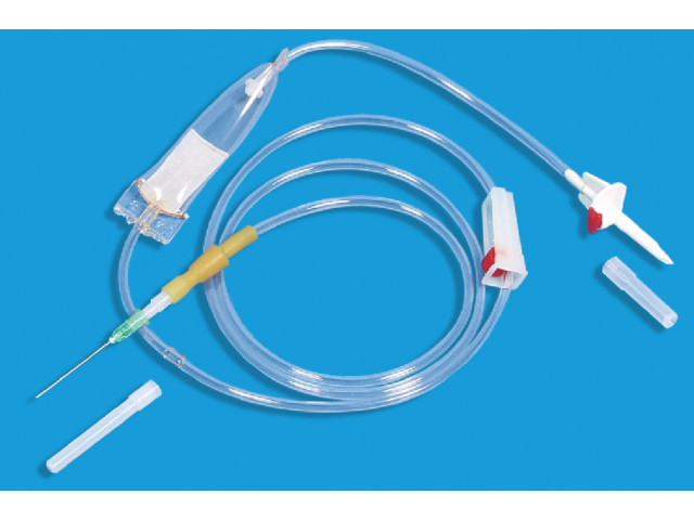 Устройство представляет собой полимерную трубку, оснащенную капельно-фильтрующим узлом, инъекционным узлом, инъекционной иглой, роликовым зажимом, иглой совмещенной с воздуховодом для присоединения к полимерному контейнеру и бутылке.