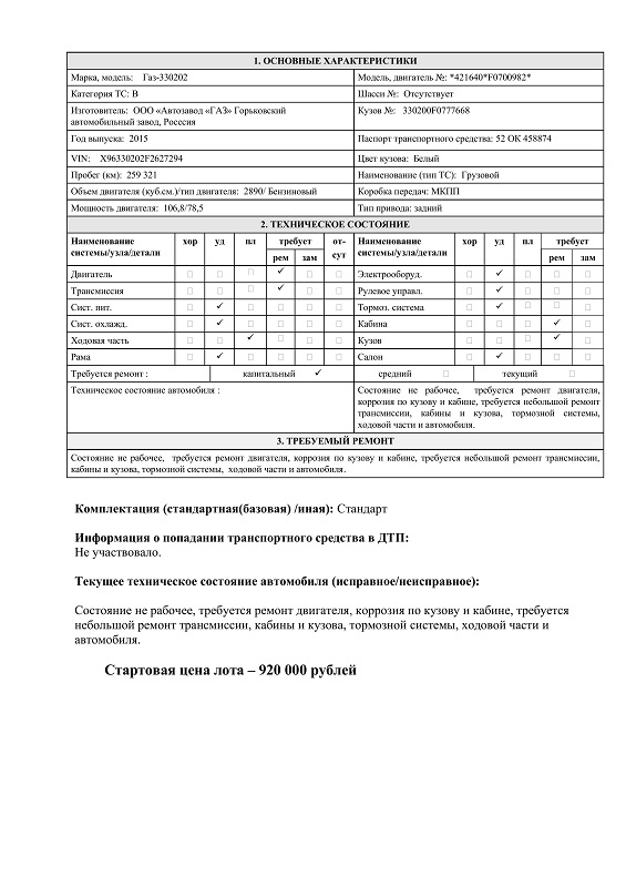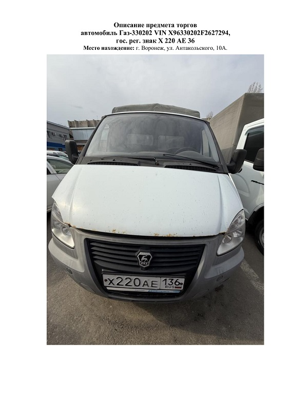 Грузовой автомобиль Газ-330202 VIN X96330202F2627294, год выпуска 2015