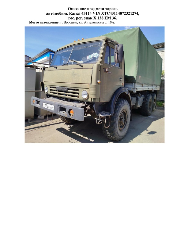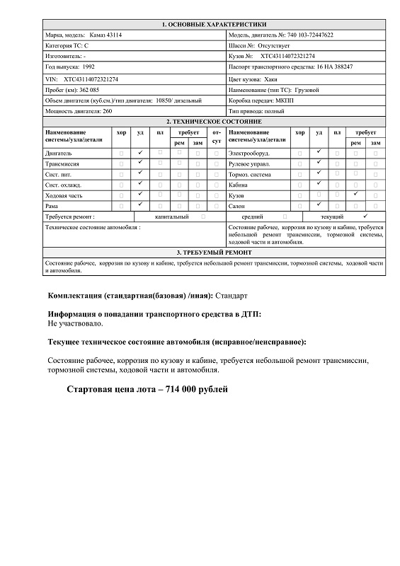 Грузовой автомобиль Камаз 43114 VIN XTC43114072321274, год выпуска 1992