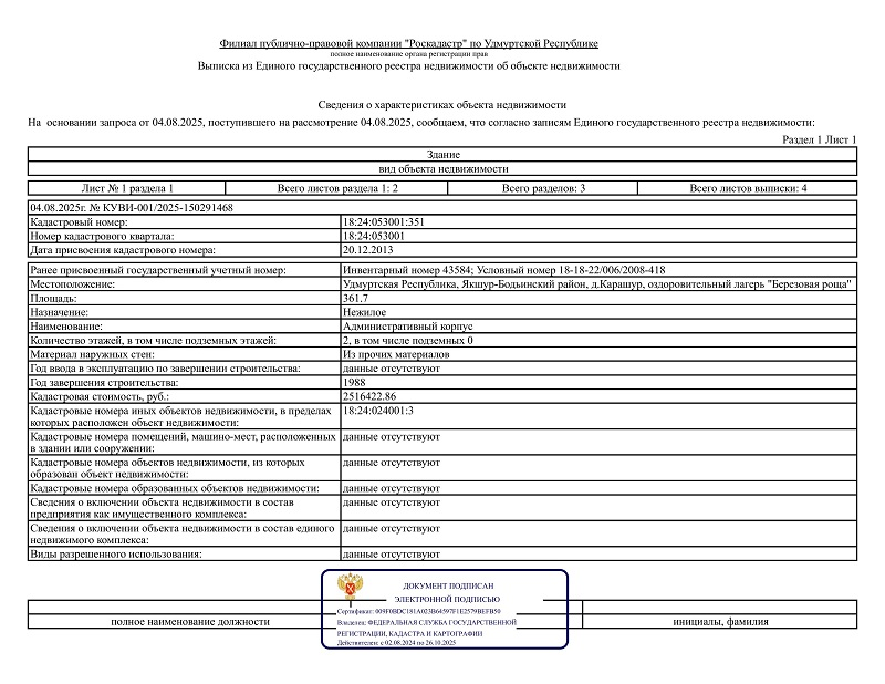 Актив 2. Объекты недвижимого и движимого имущества, расположенные по адресу: Удмуртская Республика, Якшур-Бодьинский район, д. Карашур, (оздоровительный лагерь «Березовая роща»)