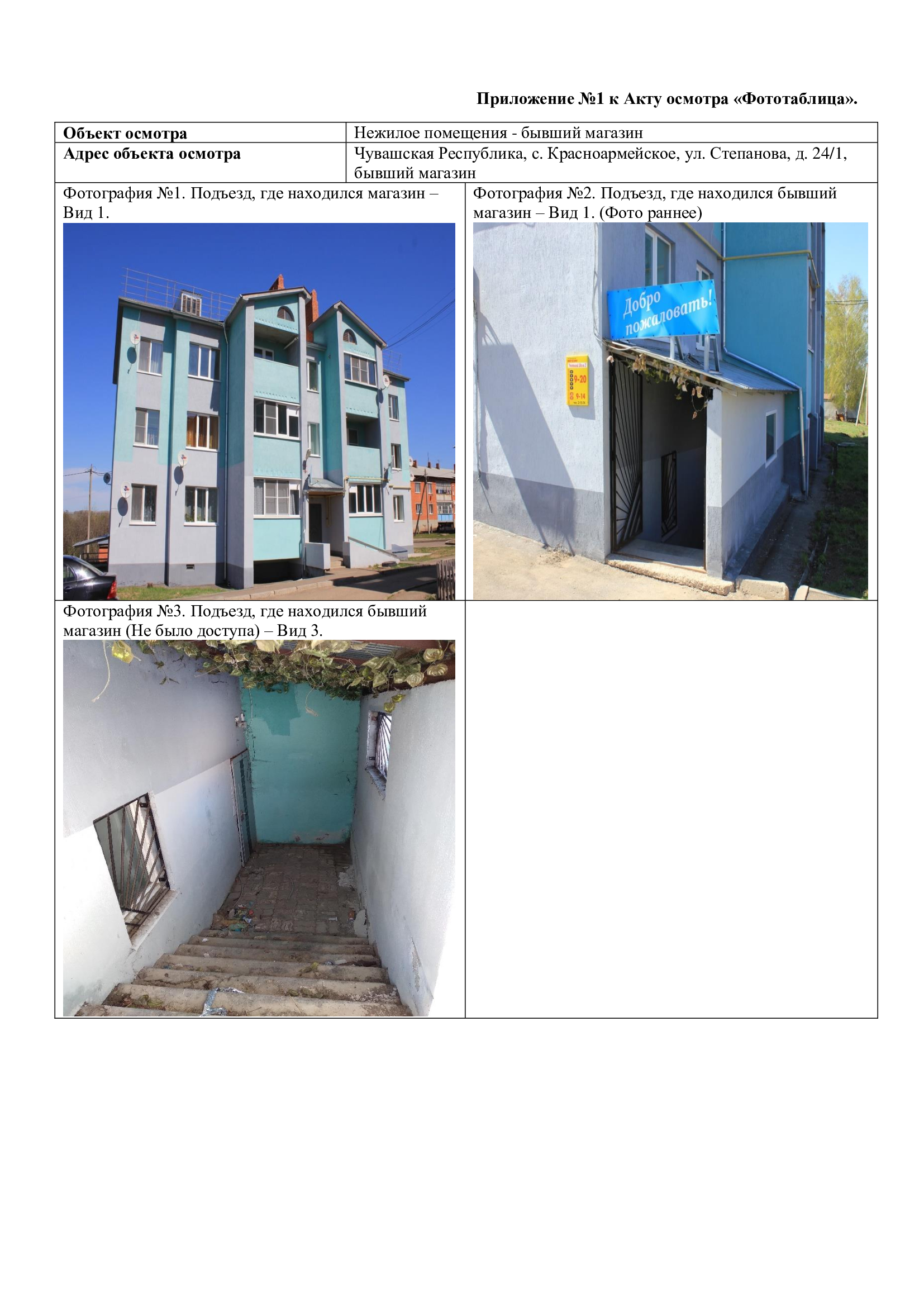 Нежилое помещение (встроенное, магазин) в цокольном этаже жилого дома, общ. площ.: 140,30 кв.м, к/н: 21:14:090116:130. Адрес: Чувашская Республика, р-н. Красноармейский, с. Красноармейское, ул. Г. Степанова, д. 24/1, пом. 1