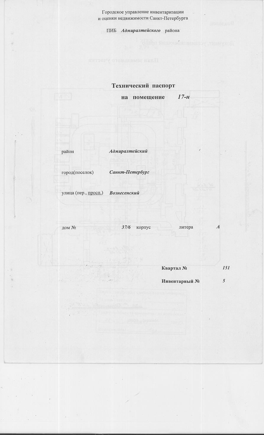 Нежилое помещение, общая площадь 183,4 кв.м. Кадастровый номер: 78:32:0001151:1398. Адрес: Ленинградская область, г. Санкт-Петербург, Вознесенский пр-т, д. 37/6, лит. А, пом. 17-Н;