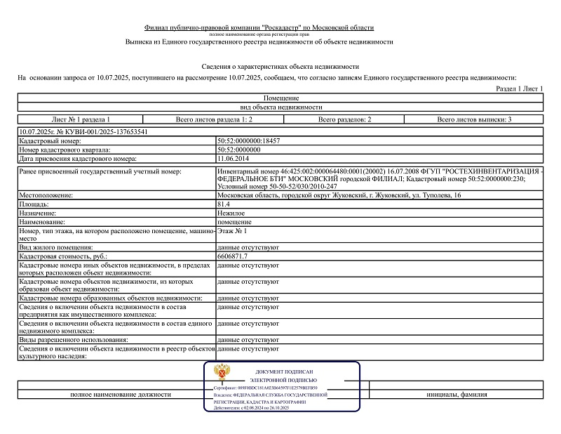 Местоположение: Московская область, городской округ Жуковский, г. Жуковский, ул. Туполева, 16.