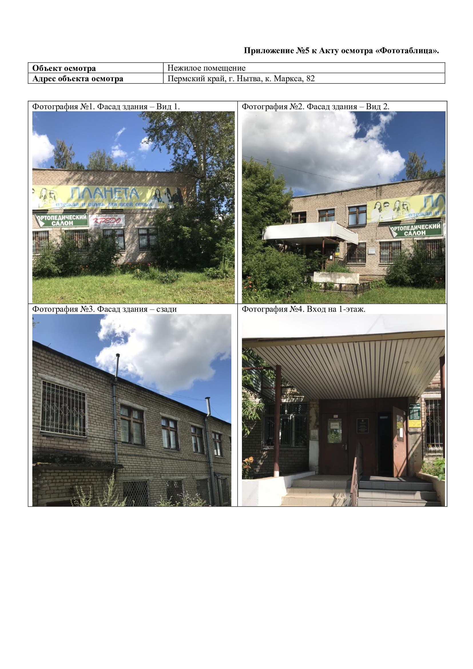 Нежилое помещение, общая площадь: 454,2 кв.м. Адрес: Пермский край, Нытвинский район, г. Нытва, ул. Карла Маркса, д. 82. Кадастровый номер: 59:26:0610474:64