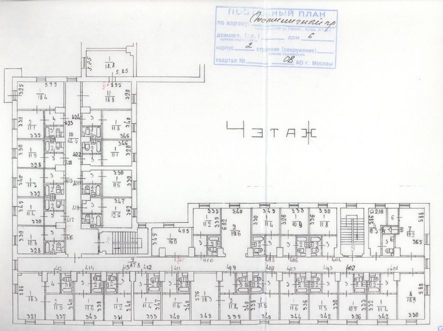Номера на поэтажном плане: этаж 4, помещение II – комната 1;