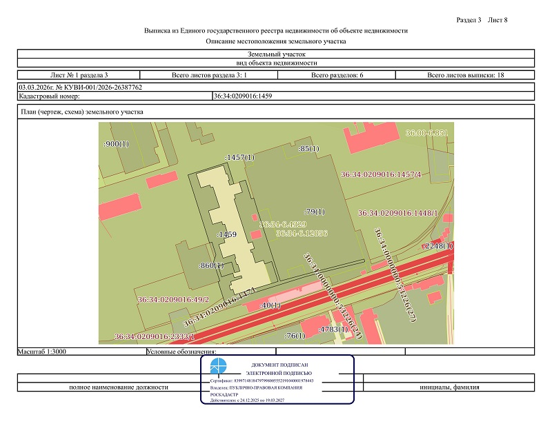 Площадь: 8955 +/- 33 кв.м. Кадастровый номер: 36:34:0209016:1459.