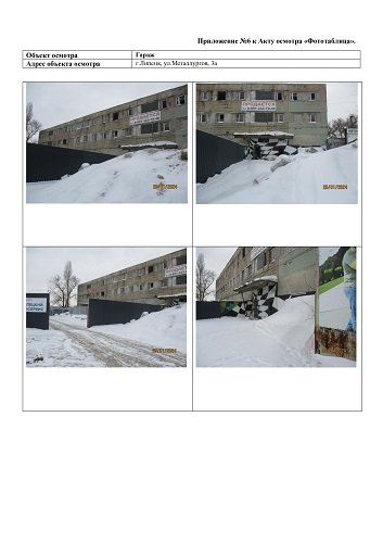- Здание гаража (общая площадь 10571,7 кв.м) с полуразрушенной проходной (общая площадь 41,1 кв.м). Адрес: Липецкая обл., г. Липецк, ул. Металлургов, влад. 3А. Кадастровый номер: 48:20:0035001:3895