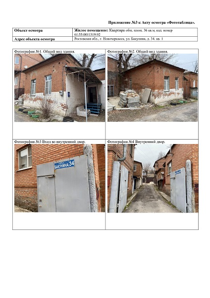 2-комнатная квартира, общая площадь 36,00 кв.м. Адрес: Ростовская область, г. Новочеркасск, ул. Бакунина, д. 34. кв. 1. Кадастровый номер 61:55:0011319:92.