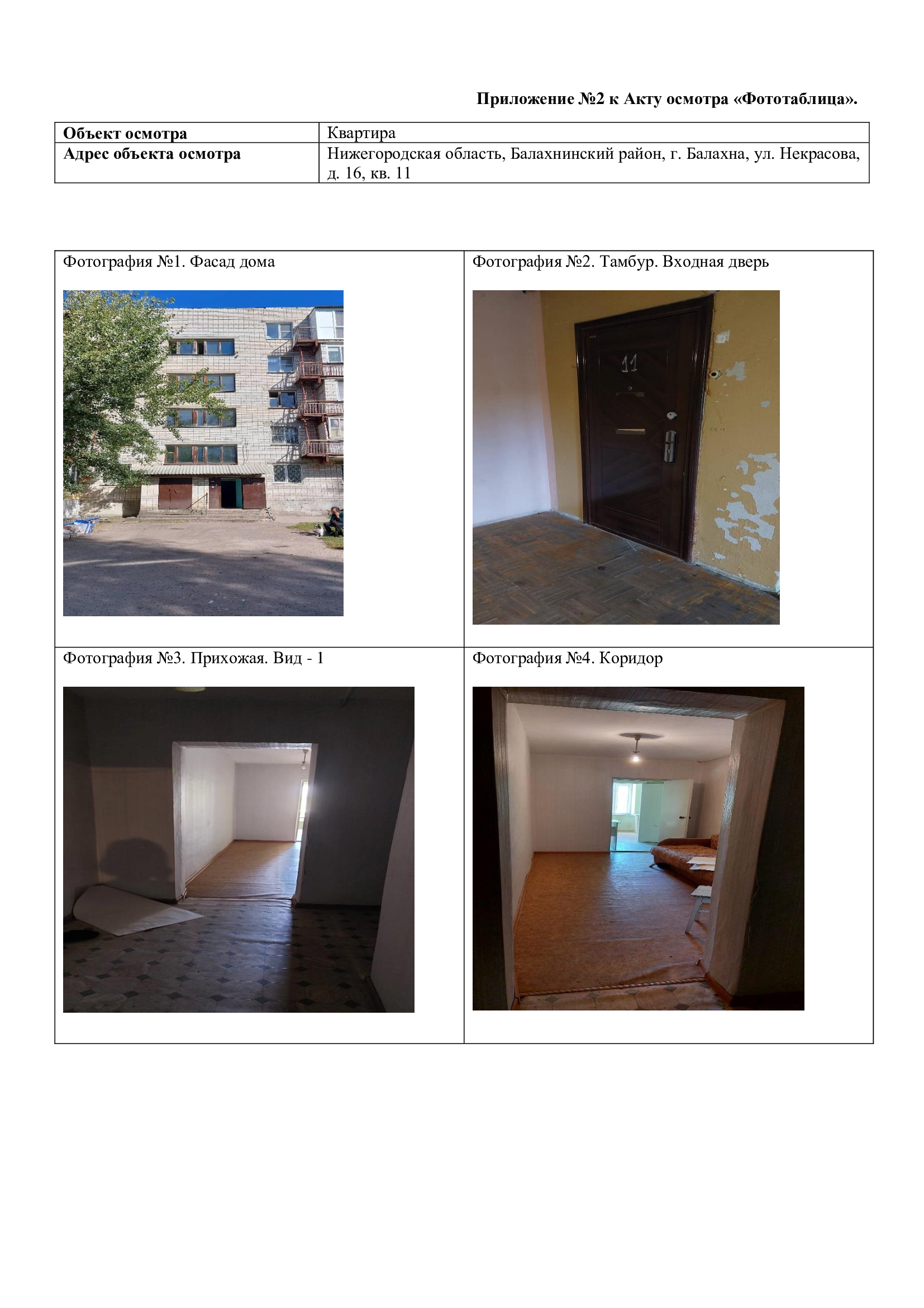 2-комнатная квартира, 4-й этаж 5-ти этажного кирпичного дома общая площадь 59 кв.м. Адрес: Нижегородская обл., г. Балахна, ул. Некрасова, д. 16, кв. 11. Кадастровый номер 52:16:0030607:1152