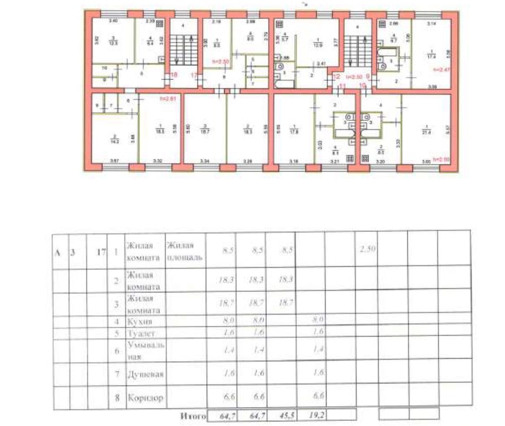 Площадь: 64,7 кв.м. Этаж: № 3.