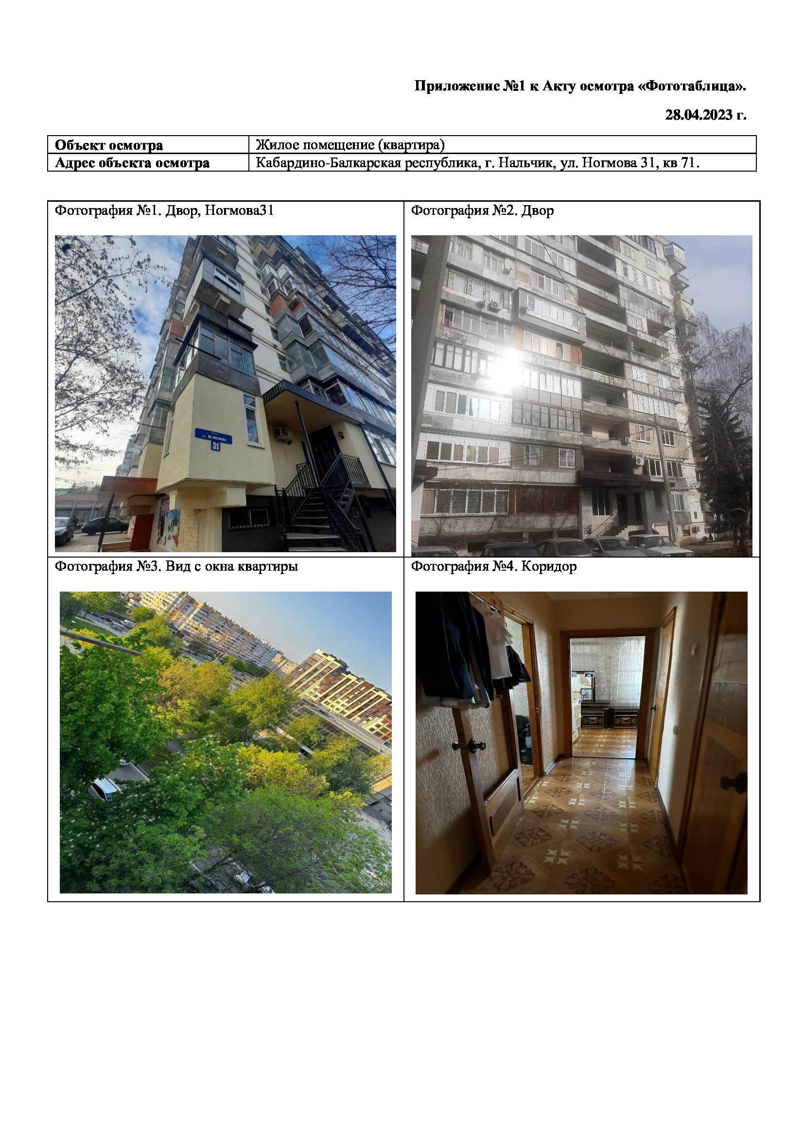 Адрес: Кабардино-Балкарская Республика, г. Нальчик, ул. Ногмова, д. 31, кв. 71. Кадастровый номер: 07:09:0000000:28585 (продажа посредством публичного предложения).