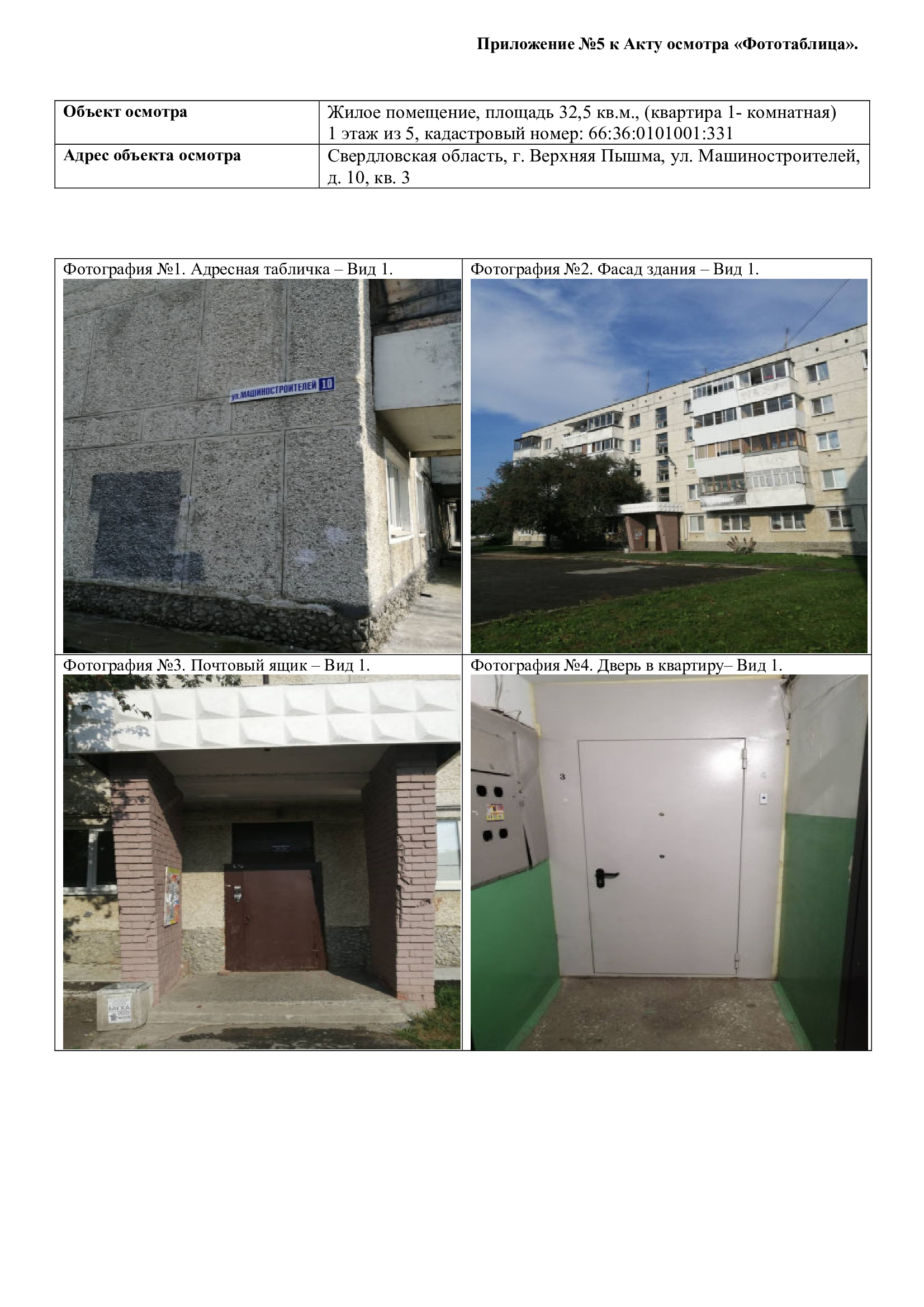 Однокомнатная квартира, общ. площ.: 32,5 кв.м, в 5-ти этажном панельном доме к/н: 66:36:0101001:331. Адрес: Свердловская область, г. Верхняя Пышма, ул. Машиностроителей, д. 10, кв. 3