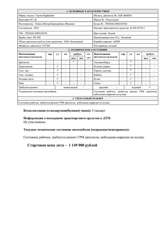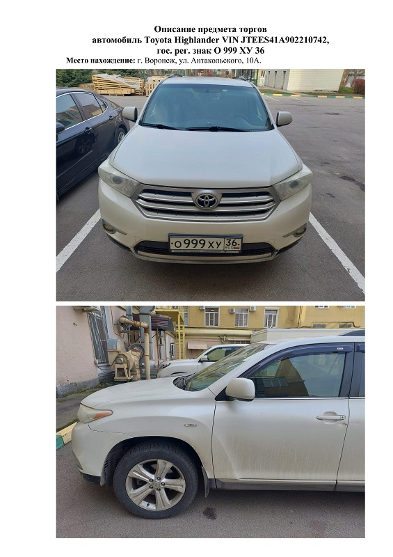 3 легковых автомобиля Toyota Highlander VIN JTEES41A902210742, год выпуска 2012