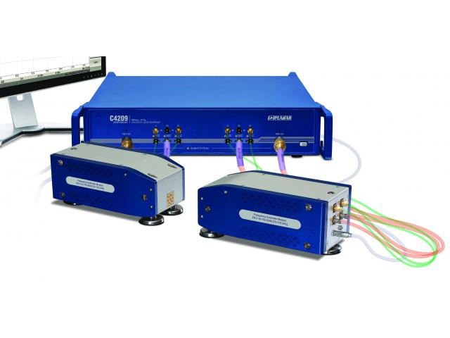 C4209 - двухпортовый векторный анализатор цепей с возможностью подключения внешних преобразователей частоты CobaltFx с волноводными соедини- телями, которые позволяют перекрывать частотный диапазон измерений от 50 до 110 ГГц.