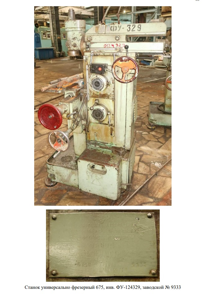 Станок универсально-фрезерный, инв. № ФУ-124329, зав. № 9333.