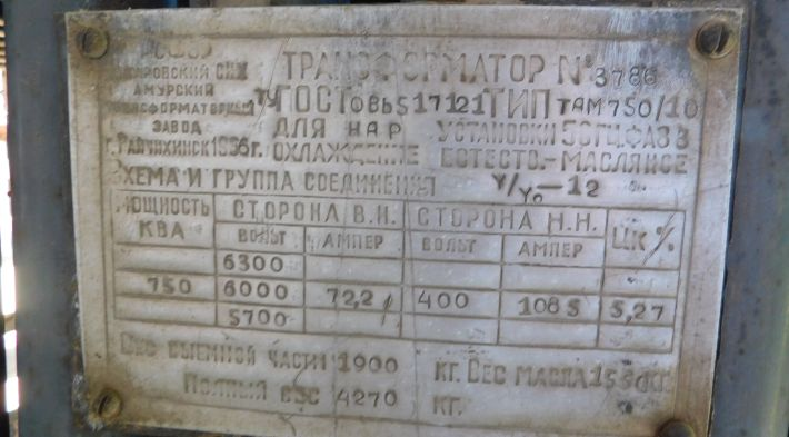 Силовой трансформатор 750 КВА.