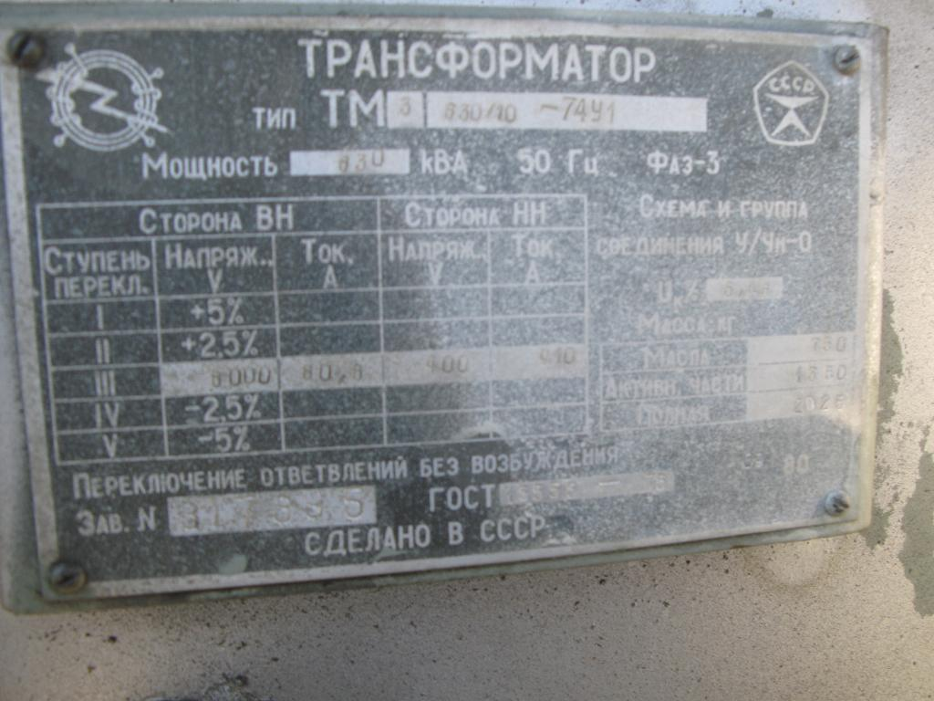 Силовой трансформатор ТМЗ 630 кВА, 1980 г.в., заводской № 317895.