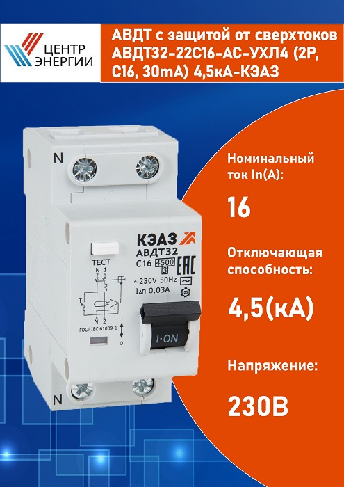 Автоматический выключатель дифференциального тока (АВДТ) АВДТ32-22C25-AC-УХЛ4 (2P, C25, 30mA) 4,5кА-КЭАЗ обеспечивает надежную защиту от сверхтоков и эффективно реагирует на любые неполадки в электрической сети. С двумя полюсами и номинальным током 25А, этот компактный автомат имеет габарит всего 2 модуля.<br/><br/>Номинальное рабочее напряжение переменного тока составляет 230В, а предельная коммутационная способность достигает 4,5кА, обеспечивая надежную защиту оборудования. Номинальный отключающий дифференциальный ток 30мА и уставка расцепителей токов короткого замыкания на уровне 5In-10In гарантируют быструю реакцию на любые возможные угрозы.<br/><br/>Этот автомат обладает характеристикой диапазона отключения C, обеспечивая оптимальную защиту и минимизацию потерь мощности до 4,5Вт. С защитной характеристикой по дифференциальному току типа АС и защитой от сверхтоков, он гарантирует безопасность и надежность работы электрической сети.<br/><br/>С удобным способом монтажа на DIN-рейку, передним присоединением внешних проводников и возможностью отключения нейтрали, этот автомат легко устанавливается и обеспечивает надежное соединение. Его эксплуатационные характеристики соответствуют климатическому исполнению УХЛ4, обеспечивая стабильную работу в широком диапазоне рабочих температур от -25°C до +55°C.<br/><br/>Выбирая автоматический выключатель дифференциального тока АВДТ32-22C25-AC-УХЛ4 (2P, C25, 30mA) 4,5кА-КЭАЗ, вы получаете надежное и эффективное решение для защиты вашей электрической сети.