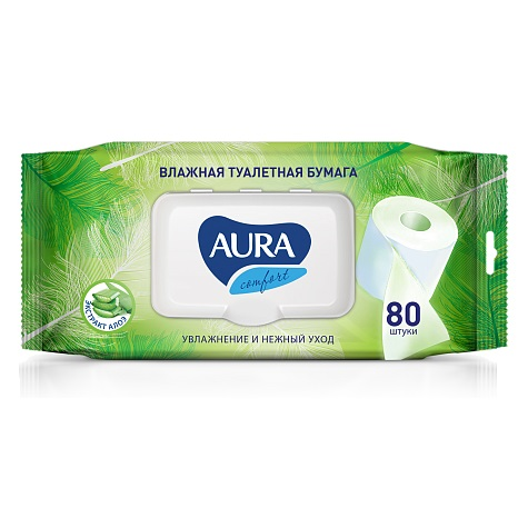 Бумага туалетная влажная "AURA ULTRA COMFORT" (уп-ка: 80 шт. с крышкой)