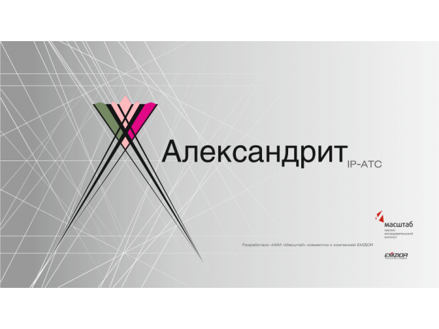 IP АТС Александрит осуществляет передачу голосового трафика и данных по протоколам IP-телефонии. Обеспечивает сотрудников предприятия услугами IP-телефонии.