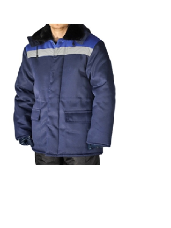 Зимняя куртка из смесовой ткани(70% полиэфир, 30% хлопок) плотность 200 г/м2, ВО пропитка , супатная застежка на пуговицах, светоотражающая лента шириной 5,0 см