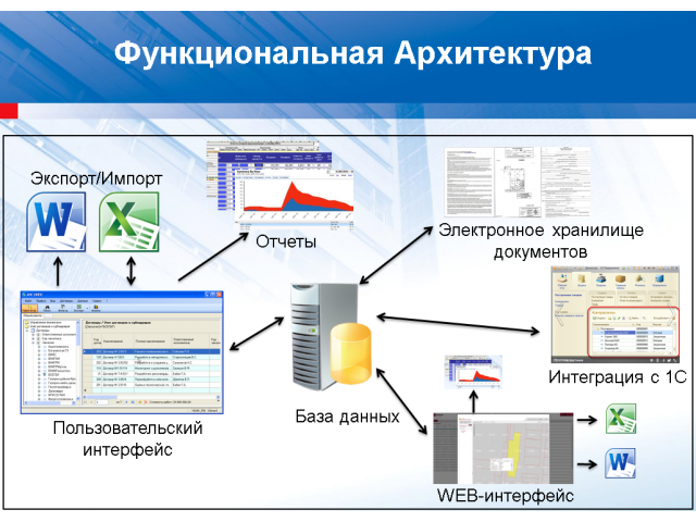• Интеграция с популярными продуктами: Платформа 1С, Парус, MS Office, 2Gis, Росреестр, ГИС ЖКХ