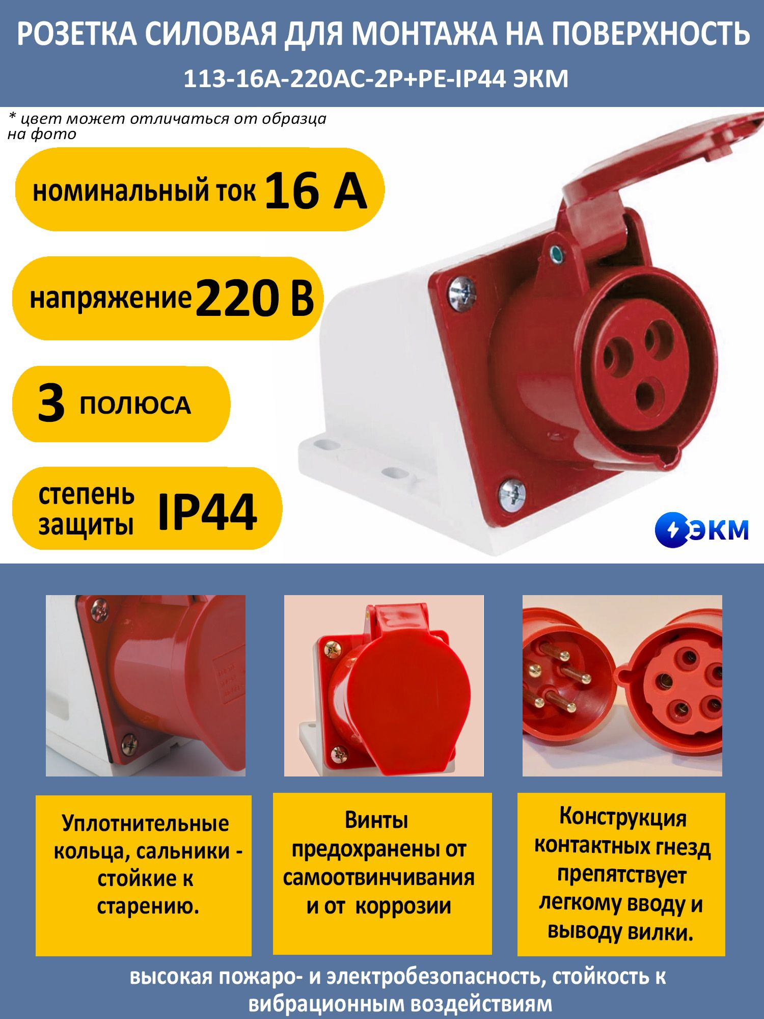 Силовой разъем предназначен для эксплуатации в одно- и трехфазных сетях для подключения бытового и промышленного оборудования к электросети. Розеточные узлы силового разъема изготовлены из фосфористой бронзы. Для защиты от коррозии все элементы покрыты никелем. Винты, применяемые для механических и электрических соединений, предохранены от самоотвинчивания . Давление, оказываемое контактными гнездами на контактные вилки, препятствует легкому вводу и выводу вилки. Степень защиты стационарной розетки для монтажа на поверхность -IP44 - позволяет эксплуатировать устройство во влажной и загрязненной пылью среде. Корпус и изолирующие детали стационарного силового разъема выполнены из термостойкого материала, не поддерживающего горение. Стационарная розетка для монтажа на поверхность устанавливается скрытым или открытым способом на различные основания, в том числе машины, и подключаются к электросети, удобно использовать для подключения промышленного оборудования.