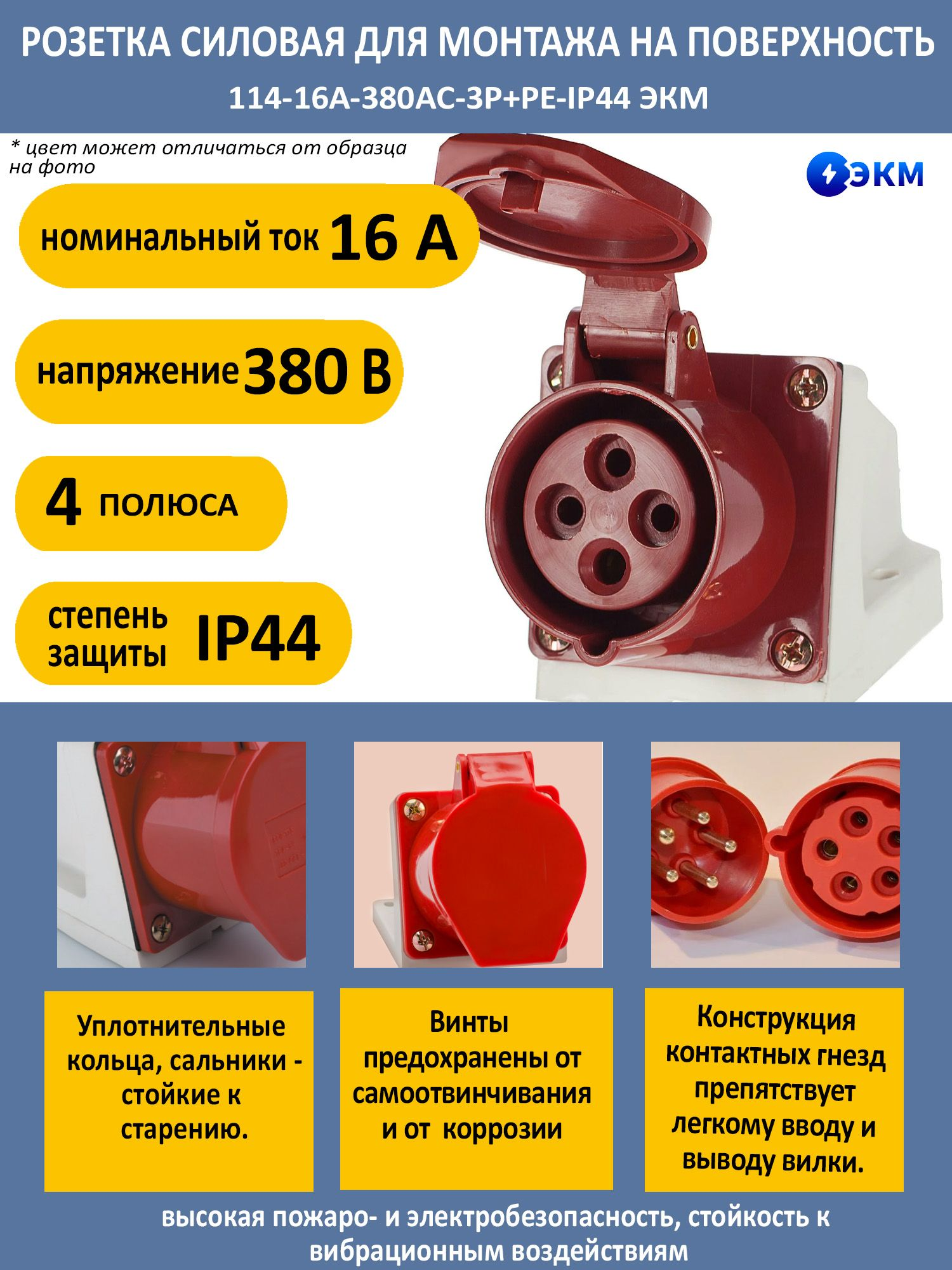 Силовой разъем предназначен для эксплуатации в одно- и трехфазных сетях для подключения бытового и промышленного оборудования к электросети. Розеточные узлы силового разъема изготовлены из фосфористой бронзы. Для защиты от коррозии все элементы покрыты никелем. Винты, применяемые для механических и электрических соединений, предохранены от самоотвинчивания . Давление, оказываемое контактными гнездами на контактные вилки, препятствует легкому вводу и выводу вилки. Степень защиты стационарной розетки для монтажа на поверхность -IP44 - позволяет эксплуатировать устройство во влажной и загрязненной пылью среде. Корпус и изолирующие детали стационарного силового разъема выполнены из термостойкого материала, не поддерживающего горение. Стационарная розетка для монтажа на поверхность устанавливается скрытым или открытым способом на различные основания, в том числе машины, и подключаются к электросети, удобно использовать для подключения промышленного оборудования.